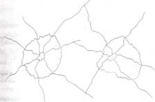 When there have been successive penetrations of glass, it is frequently possible to determine the sequence of impact by observing the existing fracture lines and their points of termination. A fracture always terminates at an existing line of fracture. In Figure 4-20, the fracture on the left preceded that on the right; we know this because the latter's radial fracture lines terminate at the cracks of the former.